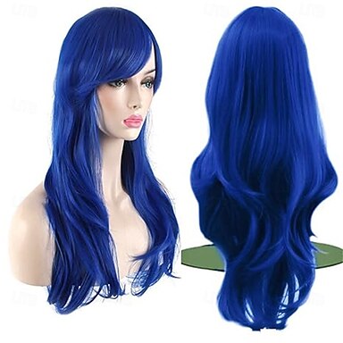Karnevalsperuk 2026 Blå Vågigt Lång Syntetisk festivalperuk Mardi Gras Parad Cosplay-dräkthår för Dam