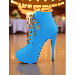 Beige platåstövletter i konstläder med snörning för kvinnor - högklackade stilettskor med festklack för nattliv och klubbkläder