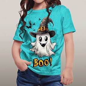 Halloween Flickor 3D Grafisk Spöke T-shirt Kortärmad Sommar Vår Mode Grundläggande Polyester Barn 4-12 år Rund hals Utomhus Ledigt Dagligen Normal