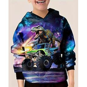 Pojkar 3D Grafisk Galax Dinosaurie Huvtröja Långärmad Vår Höst Mode Streetwear Barn 4-12 år Huva Utomhus Ledigt Dagligen Normal