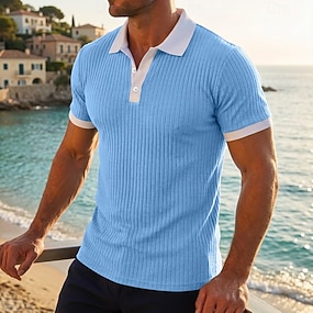 Herr Strukturerad Golftröja Ledigt Arbete Ribbstickad polokrage Klassisk Kortärmad Grundläggande Modern Ensfärgat Färgblock Ribbad Sommar Vår Vår & sommar Normal Blå Vit Gul Grön Grå Strukturerad