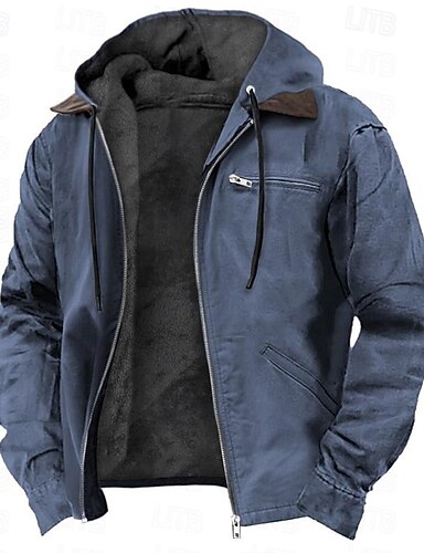 Herr Huvtröja Huvtröja med dragkedja Sherpa linne Armégrön Blå Brun Grå Huva Slät Ficka Sport & Utomhus Dagligen Helgdag Polyester Vintage Streetwear Ledigt Höst vinter Kläder Pull Tröjor Långärmad