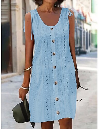 Dam Knälång klänning Vit klänning Vardagsklänning Sommarklänning Öljett klänning Mode Modern Strand Semester Helgdag Normal Slät Ärmlös U-hals Blå Svart Vit Rodnande Rosa Sommar Vår