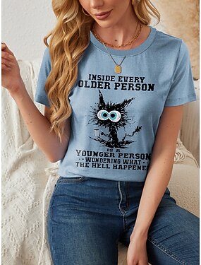 Dam T-shirt Mönster Grafisk Djur Katt Vintage Stylish Klassisk Kortärmad Rund hals Vanliga toppar Dagligen Helgen Blå Vit Guld Grön Grå Sommar Vår
