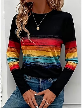 Kvinnors T-shirt Crew Neck Lång ärm Tunika Ombre Geometrisk Modern Avslappnad Vanliga Toppar Dagligt Helg Tryck Blå Orange Höst Vinter