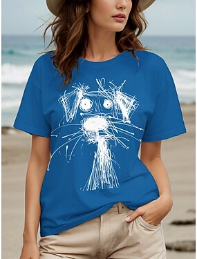Dam T-shirt Mönster Grafisk Djur Vintage Stylish Klassisk Kortärmad Rund hals Vanliga toppar Dagligen Helgen Blå Svart Marinblå Beige Sommar Vår Höst Vinter