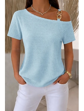 Dam Blus Ensfärgat Vintage Stylish Grundläggande Kortärmad Enaxlad Vanliga toppar Dagligen Blå Svart Vit Purpur Grön Sommar Vår