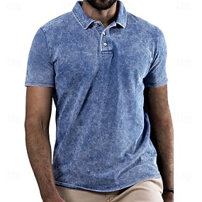 Herr Marmor Pikétröjor Kortärmad Polotröjor Skjortor med krage Ledigt Fritids- Knappar Sommar Vår Blå Grön Grå