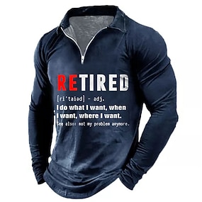 Mäns Pensionerad jag gör vad jag vill inte mitt problem längre zip polo skjortor golf skjorta långärmad polo skjortor kragskjortor outfits 3D tryck kvart zip polo svart röd blå