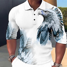 Herr Örn Pikétröjor Golftröja Långärmad Polotröjor Skjortor med krage Ledigt Rolig Streetwear Semesterkläder Festkläder 3D-utskrift Knappar Gul Blå Purpur