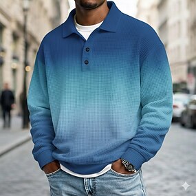 Herr Gradient Ramp Våffelpikétröjor Långärmad Polotröjor Kavajslag Sportkläder Ledigt Skola Fritids- Dagliga kläder 3D-utskrift Vår Höst Vinter Blå Purpur Ljusblå