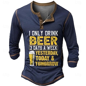 Herrars Långärmad Grafisk T-shirt Rolig Öldrickande Pun Henley Skjorta - Igår Idag Imorgon