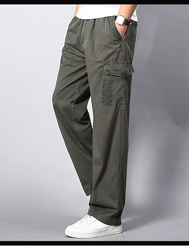 Herr Militärbyxor Cargo byxor Säckiga byxor Flikficka Slät Andningsfunktion Utomhus Dagligen Stor och hög Svart Grön