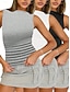Multipack 3st Dam Rund hals Ärmlös Svart + vit + grå Stridsvagn Ärmlös tröja T-tröja Ensfärgat Ledigt Dagligen Bomull Sommar