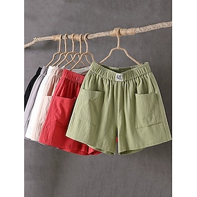 Dam Konstbomullslinne Shorts Sommarshorts Casual shorts Semester Mode Ledigt vardag Kort Hög midja Ensfärgat Slät Ficka Komfort Lättvikt Mjuk Oelastisk Utomhus Streetwear Helgdag Svart Vit Kaki