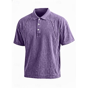 Herr Sport pikétröjor Tvätta skjorta i 100 % bomull Ledigt Helgdag Kavajslag Kortärmad Vintage Grundläggande Ensfärgat Slät Årgång Bedrövad Sommar Vår Vår & sommar Normal Svart Ljusgrön Rodnande Rosa