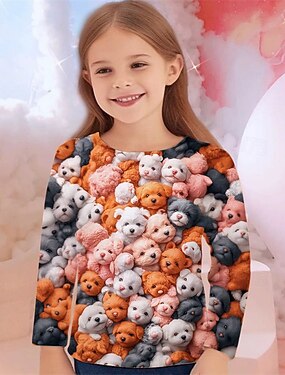 Flickor 3D Grafisk Djur Hund T-shirt Långärmad Vår Höst Mode Grundläggande Barn 4-12 år Rund hals Utomhus Ledigt Dagligen Normal