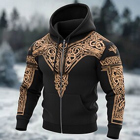 Herr 3D Print Celtics Huvtröja Jakke Tröja Viking 3D Fantasi Heltryck Långärmad Blixtlås Streetwear Semester Utekväll Blå Svart Rubinrött Brun Dragkedja Höst Vinter Designer S M L XL XXL XXXL