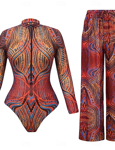 Dam Baddräkt Baddräkter i ett stycke Grafisk Dragkedja UV-skydd Långärmad Badkläder Surfing Strand Semester Vår