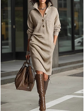 Dam Midiklänning Tröjklänning Sheath Dress Skiftklänning party Formell Semiformella klänningar Ledigt Hem Utomhus Lös passning Slät Långärmad Kavajslag Svart Gul Rubinrött Brun Vår Höst Vinter