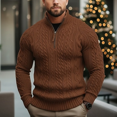 Herr Jultröjor Pullover tröja Kabel Sticka Vanliga toppar Stickat Fjärdedels blixtlås Slät Hög krage Modernt Modernt Ledigt Xmas Arbete Kläder Vår Höst vinter Blå Svart M L XL
