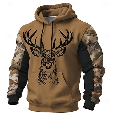Herr Kamouflage Hjort Huvtröja Jakke Tröja Mode Dagligen Långärmad Huva Semester Jakt Brun Grön Grå Snörning Dragkedja Höst Vinter Designer S M L XL XXL XXXL