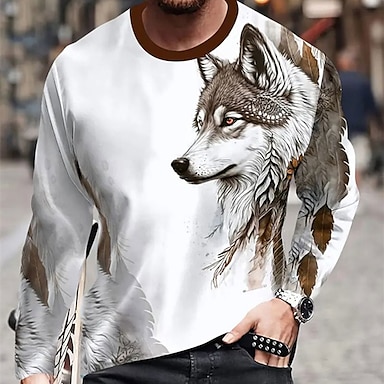 Herr Grafisk Djur Varg T-shirt Långärmad T-shirt 3D-tryck Rund hals Skjorta Mode Designer Ledigt Utomhussport Helgdag Utekväll Vinröd Blå Brun Vår & Höst Kläder S M L XL 2XL 3XL 4XL