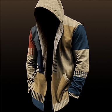 Herr Grafisk Vinterkappa Fleece-jacka Kappa Håller värmen Bekväm Ledigt Dagliga kläder Dragkedja Ficka 3D-utskrift Höst Vinter Huva Långärmad Blå Orange Brun