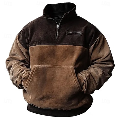 Herr Tröja Kvartströja med dragkedja Kamel Kinakrage Färgblock Lappverk Ficka Sport & Utomhus Ledigt Dagligen Vintage Streetwear Vår Höst Kläder Pull Tröjor