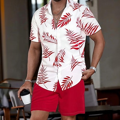 Herr Växter 2st Skjortor Set Summer Tops Kortärmad Nedvikt Ledigt Utomhus Hem Ledigt 3D-utskrift Röd / Vit