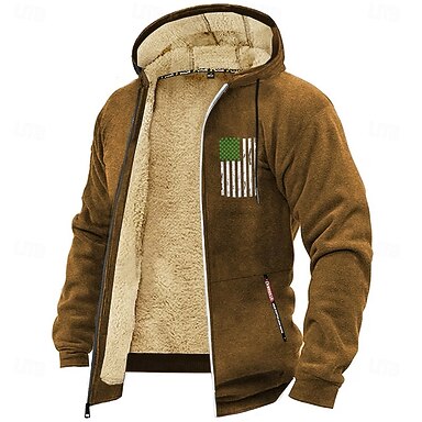 Herr Huvtröja med dragkedja Fuzzy sherpa Fleece-jacka Huvtröja i fleece Svart Vin Armégrön Marinblå Blå Huva Flagga Slät Dragkedja Ficka Snörning Sport & Utomhus Dagligen Helgen Polyester Vintage