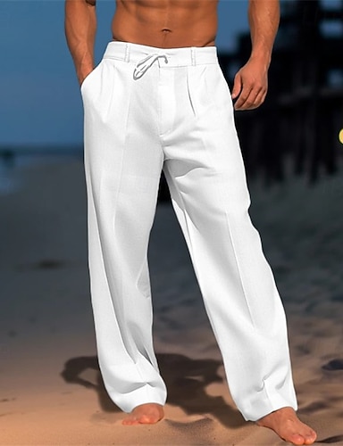 Herr Linne Byxor Kinesiska Sommarbyxor Rakt ben Slät Komfort Andningsfunktion Fullängd Ledigt Dagligen Utomhus Semester Mode Svart Vit Oelastisk