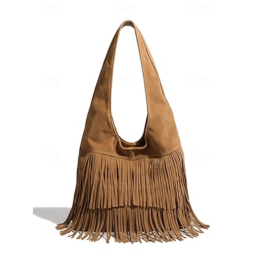 Damväska i mocka med axelrem - bohemisk stil, stor kapacitet, avslappnad vintage-hoboväska, lämplig för dagligt arbete, resor och shopping