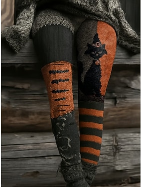 Dam Damasker Semester Vintage Mode Fullängd Hög midjaPantsHalloween Grafisk Dödskalle Katt Tryck Mjuk Andningsfunktion Elastisk Utomhus Semester Gata Mörkgrått Orange Brun Grön Vår Höst Vinter Smal