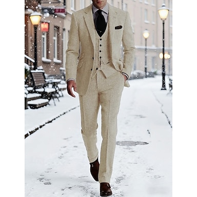 Herr Väst Formell Bröllop Jul Semester Mode Elegant Vår Höst Ficka Knappar Ylle Akryl Bekväm Slät Fiskben Enkelknäppt Kavajslag Normal Svart Champagne Rubinrött Vinröd Väst