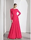 A-linje Telång Cocktailklänningar Festklänningar Elegant Långärmad Rund hals Formell Bröllop Chiffong Satäng med Plisserat Kristalldetaljer Tryck 2025