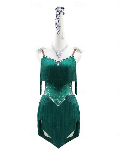 latinsk klänning med fransar för kvinnor, prestationsträning, hög spandex