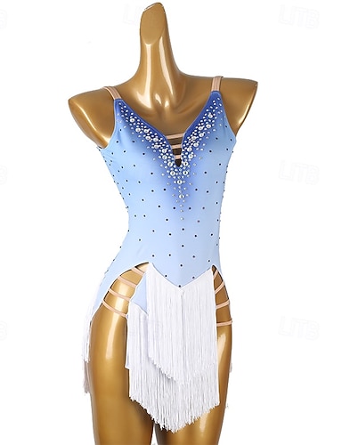dans salsa latinsk dansklänning strass tofs kvinnors flickor prestationsträning långärmad hög spandex tyll