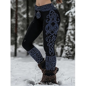 Kvinnors Viking Boho Leggings Vintage Etnisk Stil Hel Längd Hög Midja Grafisk Abstrakt 3D Utskrift Snabbtorkande Andningsförmåga Mjuk Stretchig Formell Utomhus Semester Ljusbrun Svart Rosa Svart Vår
