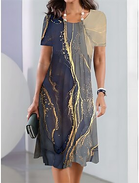 Kvinnors Maxi-klänning Avslappnad Klänning T-shirt Klänning Tee Klänning Sommardress Bohemisk Dejting Regular Fit Geometrisk Kort Ärme Crew Neck Svart Röd Blå Dammig Blå Sommar