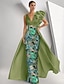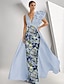 Åtsmitande Golvlång Pärlbroderad Formell klädsel Klänning för brudens mor Kvälls klänningar Balklänning med överkjol Formell klädsel Elegant Glittriga Blommig Ärmlös V-hals Bröllop Formell Caper
