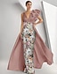 Balklänning Golvlång Balklänningar Kvälls klänningar Balklänning med överkjol Formell klädsel Glitter och glans Sexig Hög split Ärmlös Enaxlad Kvällsfest Bröllopsgäst Avtagbar Satäng med Rosett(er