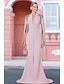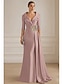 Sjöjungfru trumpet Golvlång Balklänningar Kvälls klänningar Balklänning Formell klädsel Elegant Långärmad V-hals Bröllop Formell Rosa klänning Stretchig satäng med Plisserat