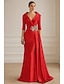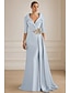Sjöjungfru trumpet Åtsmitande Golvlång Balklänningar Kvälls klänningar Balklänning Formell klädsel Elegant Vintage 3/4 ärm V-hals Bröllop Formell Satäng Stretchig satäng V Tillbaka med Krusad