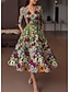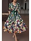 A-linje Golvlång Telång Formell klädsel Blommig klänning Cocktailklänningar Elegant Vintage Blommig Kortärmad Över axeln Trädgårdsfest Bröllop Ficka Jacquard Djupt ringad rygg med Blomtryck Ficka