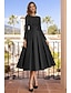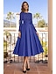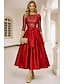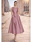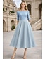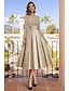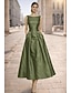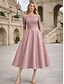 A-linje Telång Cocktailklänningar Festklänningar Elegant Vintage 3/4 ärm Fyrkantig hals Bröllop Formell Ficka Satäng med Rosett(er) Ficka