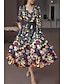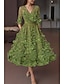 A-linje Telång Cocktailklänningar Elegant Vintage Blommig Halvlång ärm V-hals Trädgårdsfest Bröllop Ficka Satäng Spets med Broderad blomma Broderad Ficka