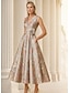 A-linje Ankellång Cocktailklänningar Festklänningar Elegant Vintage Kortärmad V-hals Bröllop Formell Jacquard med Rosett(er) Ficka