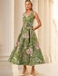 A-linje Golvlång Kvälls klänningar Elegant Vintage Blommig Ärmlös V-hals Trädgårdsfest Bröllop Ficka Jacquard med Blomtryck Slits Ficka