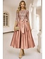 A-linje Telång Pärlbroderad Formell klädsel Klänning för brudens mor Cocktailklänningar Festklänningar Elegant Färgblock 3/4 ärm Prydd med juveler Alla hjärtans dag Formell Satäng med Glitter